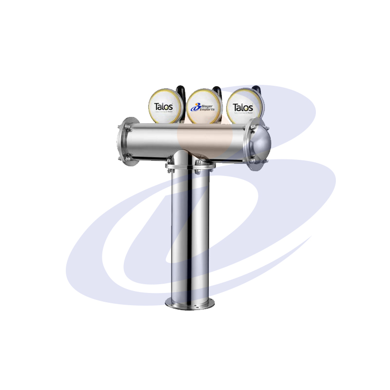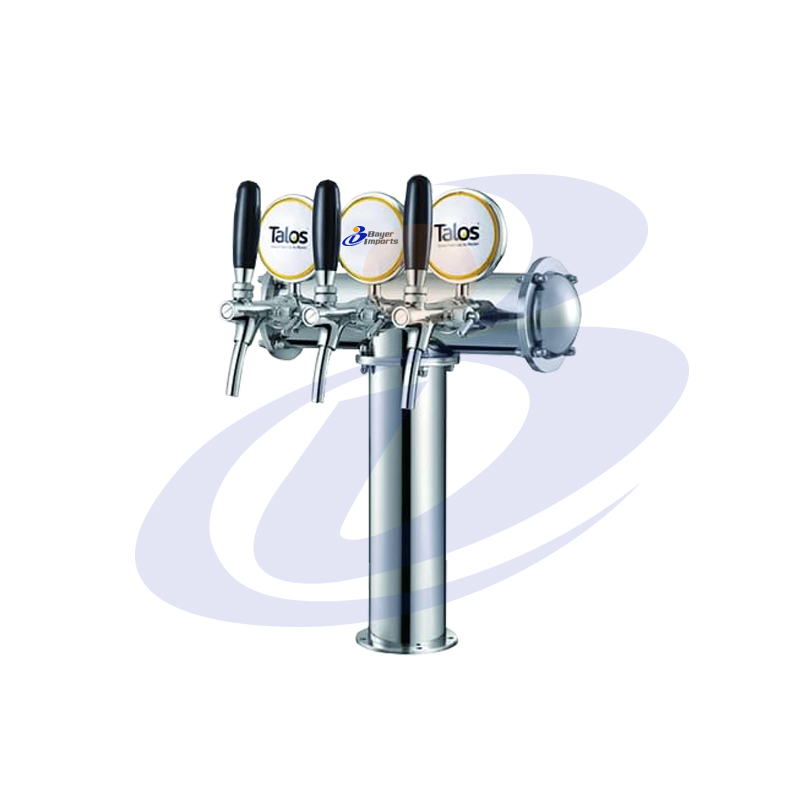 TORRE T 3 INOX., GRIFOS CON COMPENSADOR DE FLUJO, MEDALLONES RECTOR, TUBERIA DE ACERO, SISTEMA DE RECIRCULADO, INCLUYE FIJACION A MESON, MARCA TALOS. 180.000 MAS IVA
